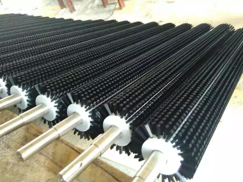2、玻璃清洗機(jī)刷輥,輥軸一般選用45#圓鋼,刷毛多為尼龍材料,耐酸堿。如需要加酸液清洗的玻璃清洗線,必須使用全不銹鋼的刷輥用來防止腐蝕,一般都用條刷機(jī)制成條刷再螺旋形燒焊在輥軸上;吸水輥,采用高密度親水分子的海綿制成,吸水性能好,干燥快,用來對玻璃表面的水滴進(jìn)行****快速吸干。