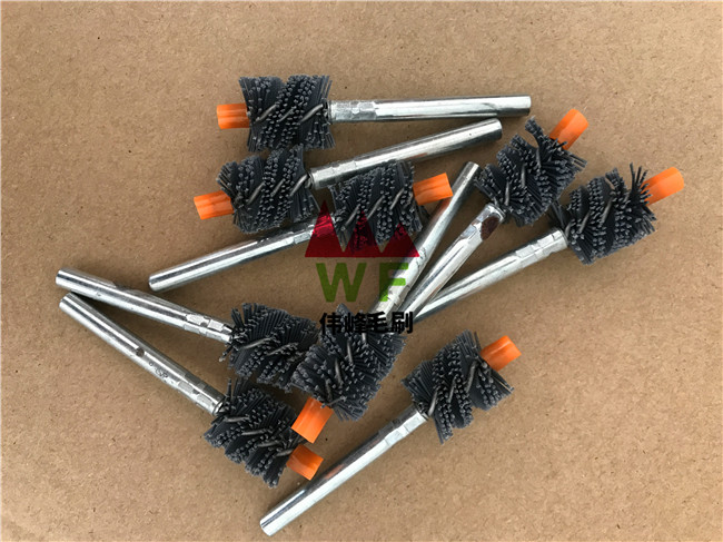 去毛刺內孔刷又叫試管刷,管子刷,清孔刷,扭絲刷,內孔刷,內管刷,清槽刷等,是一種應用非常廣泛的產品,屬于拋光清理除、除銹功能的范疇。主要是由鐵絲(鋼絲)作骨架,加以扭制,上面帶有許多排列整齊,向外伸展的細刷絲構成。刷絲材料有尼龍絲,纖維毛,豬鬃,鋼絲,銅絲,磨料絲等。管道刷一般使用在液壓閥內控去毛刺、缸套活塞內控拋光、鋼桶清洗、試管清洗、鍋爐清除污垢、金屬零件內孔去毛刺等。管道刷的適用范圍