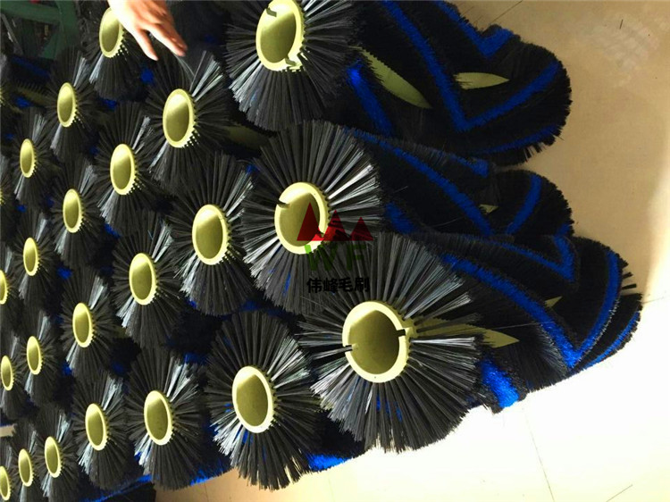 裝在市政環衛車用于清掃街道的圓盤刷或者鋼絲類圓盤刷是具代表性的環衛刷一種。產品有掃地機滾刷、壓片式滾筒組合掃地刷、滾筒式掃地機毛刷、掃地機毛刷、方塊掃路刷、圓支掃路刷、污水處理毛刷、洗地機毛刷、電腦洗車機毛刷等。環衛車盤式掃地刷,采用高強度塑料刷絲制做,用來清潔地面的污垢;洗地機用滾刷。材料可用用PP刷絲、PA絲或鋼絲幾種。